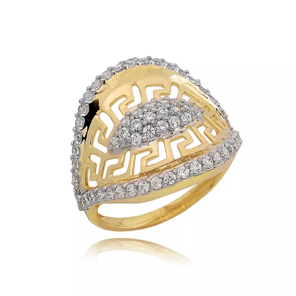 Pierścionek stworzony w duchu klasycznego jubilerstwa. Połączenie złota z kamieniami barwnymi lub bezbarwnymi nadaje mu elegancki i luksusowy charakter.