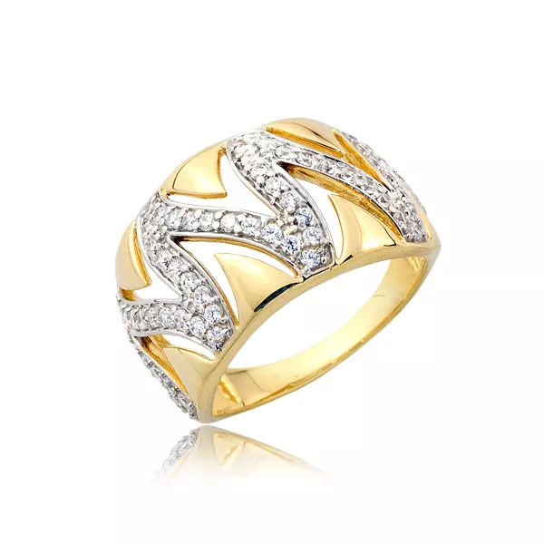 Pierścionek stworzony w duchu klasycznego jubilerstwa. Połączenie złota z kamieniami barwnymi lub bezbarwnymi nadaje mu elegancki i luksusowy charakter.