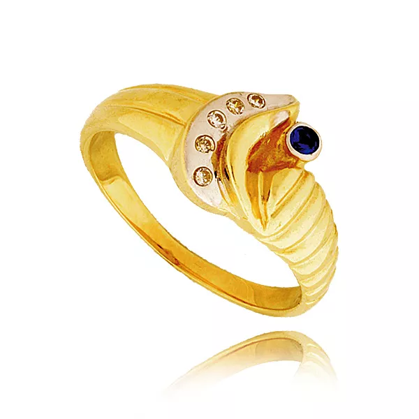 Pierścionek stworzony w duchu klasycznego jubilerstwa. Połączenie złota z kamieniami barwnymi lub bezbarwnymi nadaje mu elegancki i luksusowy charakter.