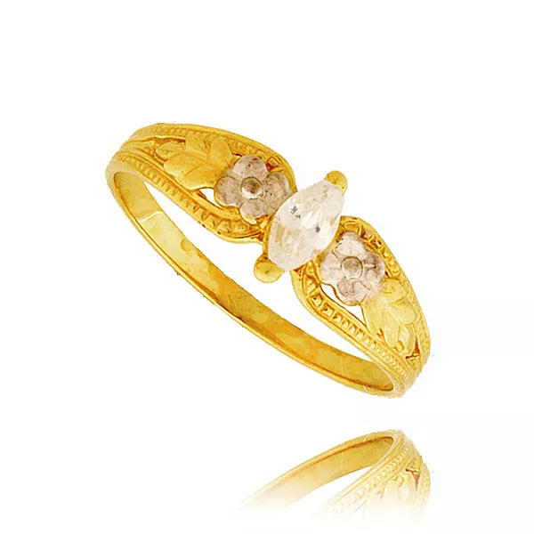 Pierścionek stworzony w duchu klasycznego jubilerstwa. Połączenie złota z kamieniami barwnymi lub bezbarwnymi nadaje mu elegancki i luksusowy charakter.