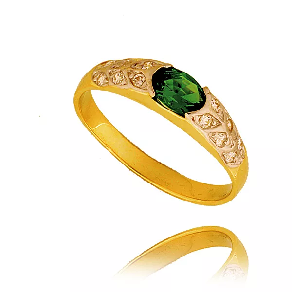 Pierścionek stworzony w duchu klasycznego jubilerstwa. Połączenie złota z kamieniami barwnymi lub bezbarwnymi nadaje mu elegancki i luksusowy charakter.