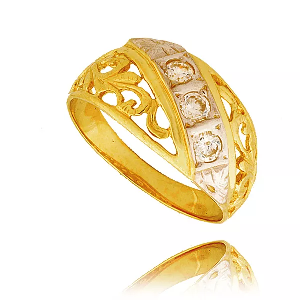 Pierścionek stworzony w duchu klasycznego jubilerstwa. Połączenie złota z kamieniami barwnymi lub bezbarwnymi nadaje mu elegancki i luksusowy charakter.