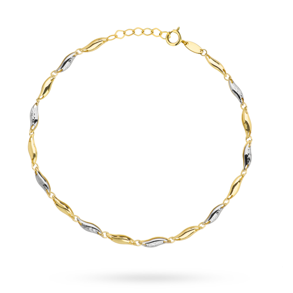 Precyzyjnie wykonana złota celebrytka bransoletka próby 585 w dwóch kolorach złota. Doskonała na prezent dla bliskiej osoby na urodziny, imieniny czy inna okazję.