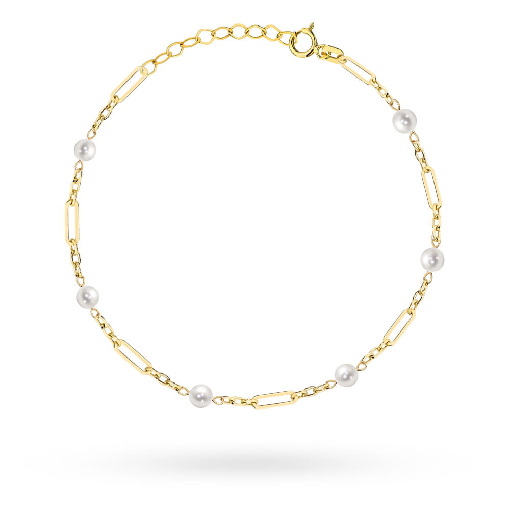Bransoletka złota długie ogniwa i perełki