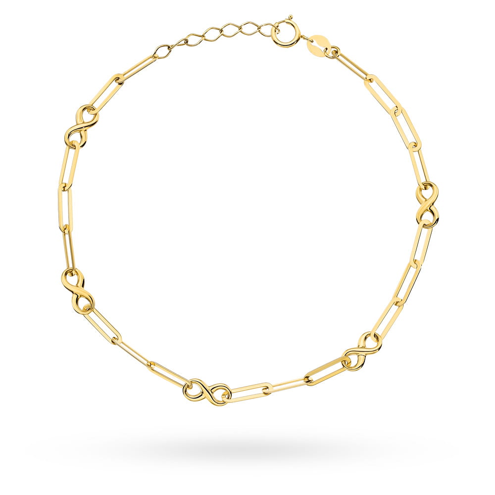 Bransoletka złota długie ogniwa i znaki nieskończoności