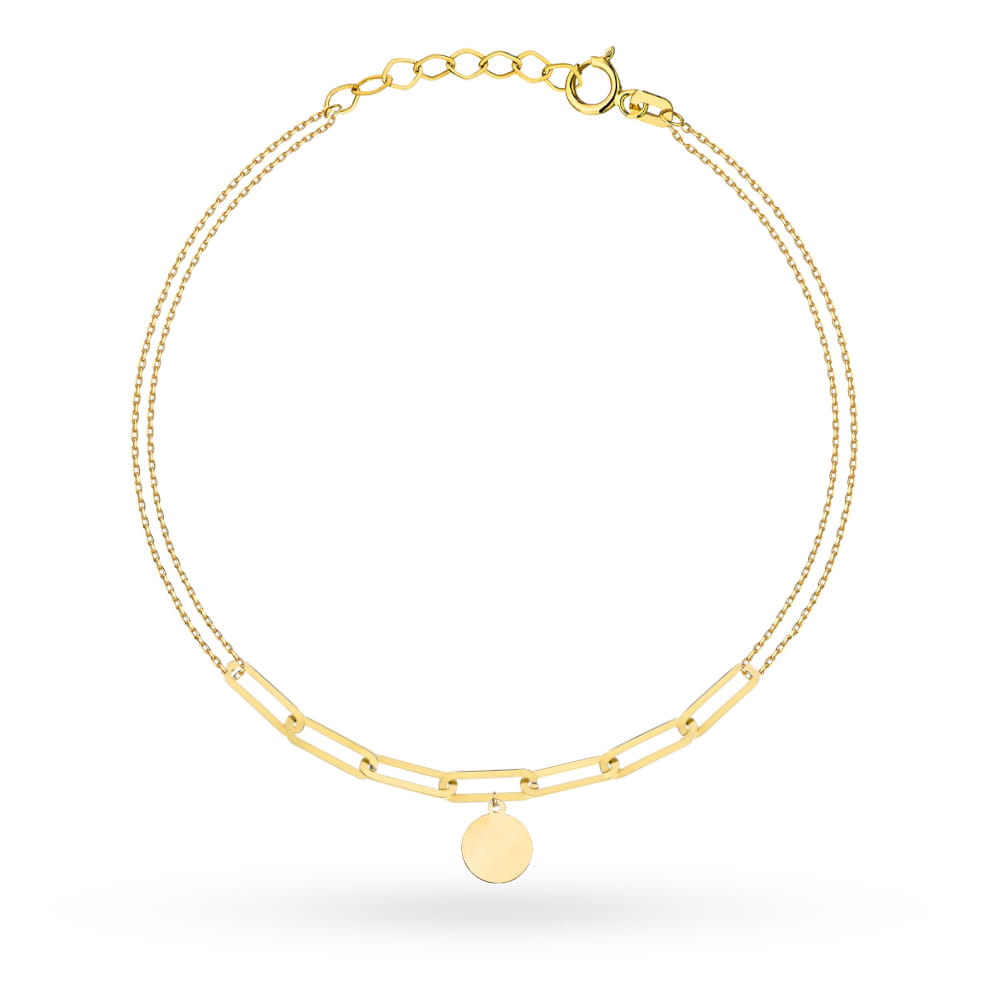 Bransoletka złota na podwójnym łańcuszku z długimi ogniwami i pełnym kółkiem
