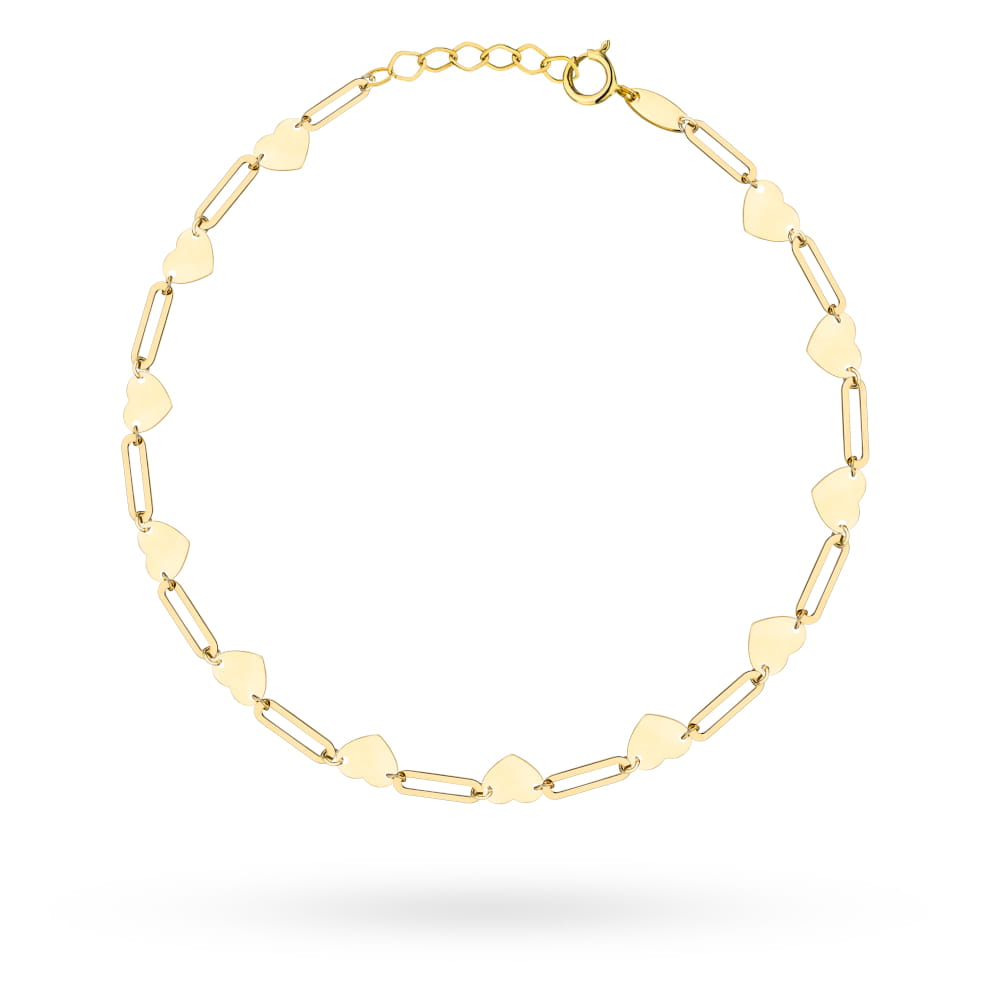 Bransoletka złota ogniwa i gładkie serca