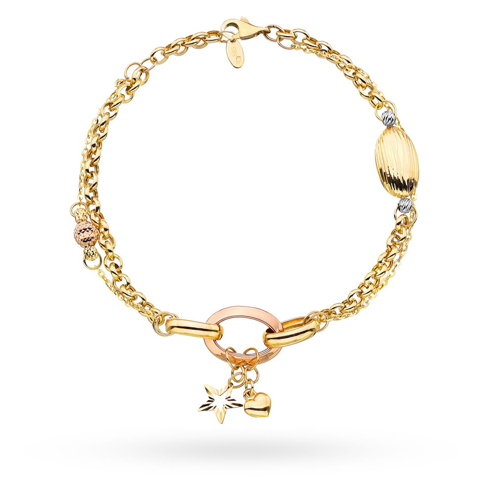 Bransoletka złota ozdobna z gwiazdką i sercem w trzech kolorach złota