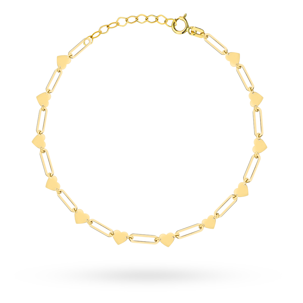 Bransoletka złota podłużne ogniwa i serduszka na nogę