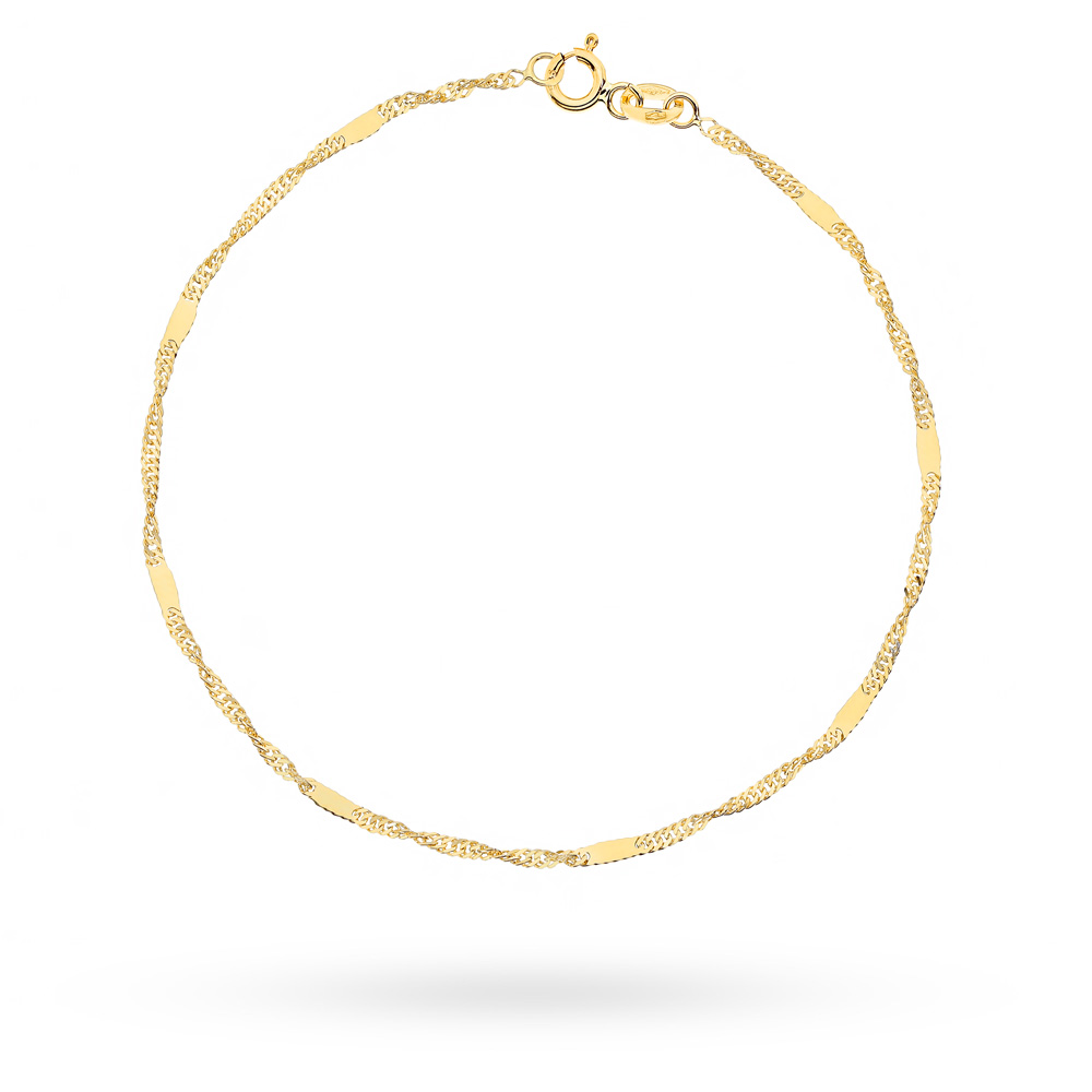Precyzyjnie wykonana złota modna bransoletka na nogę próby 585.Splot singapure z blaszką.