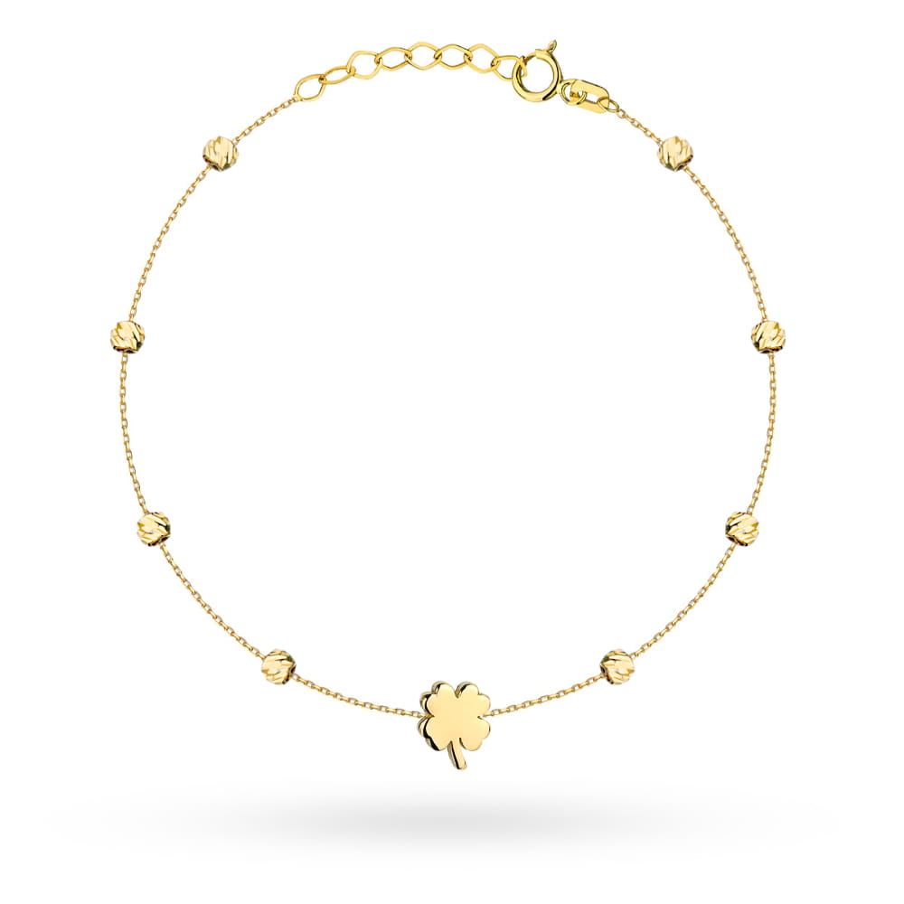Bransoletka złota trójwymiarowa koniczynka i diamentowane kulki