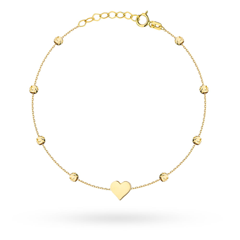Bransoletka złota trójwymiarowe serce i diamentowane kulki