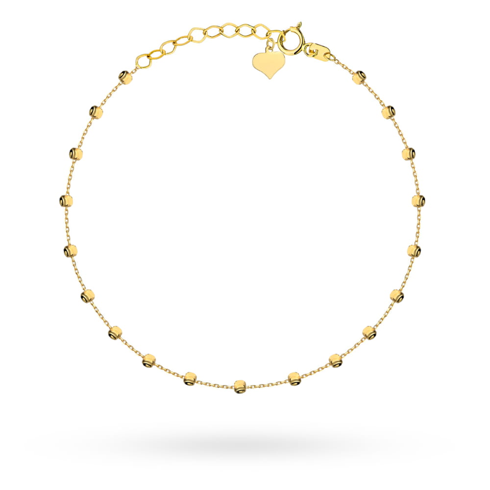 Elegancka i stylowa złota bransoletka próby 585. Bransoletka z diamentowanymi kuleczkami zakończona sercem.