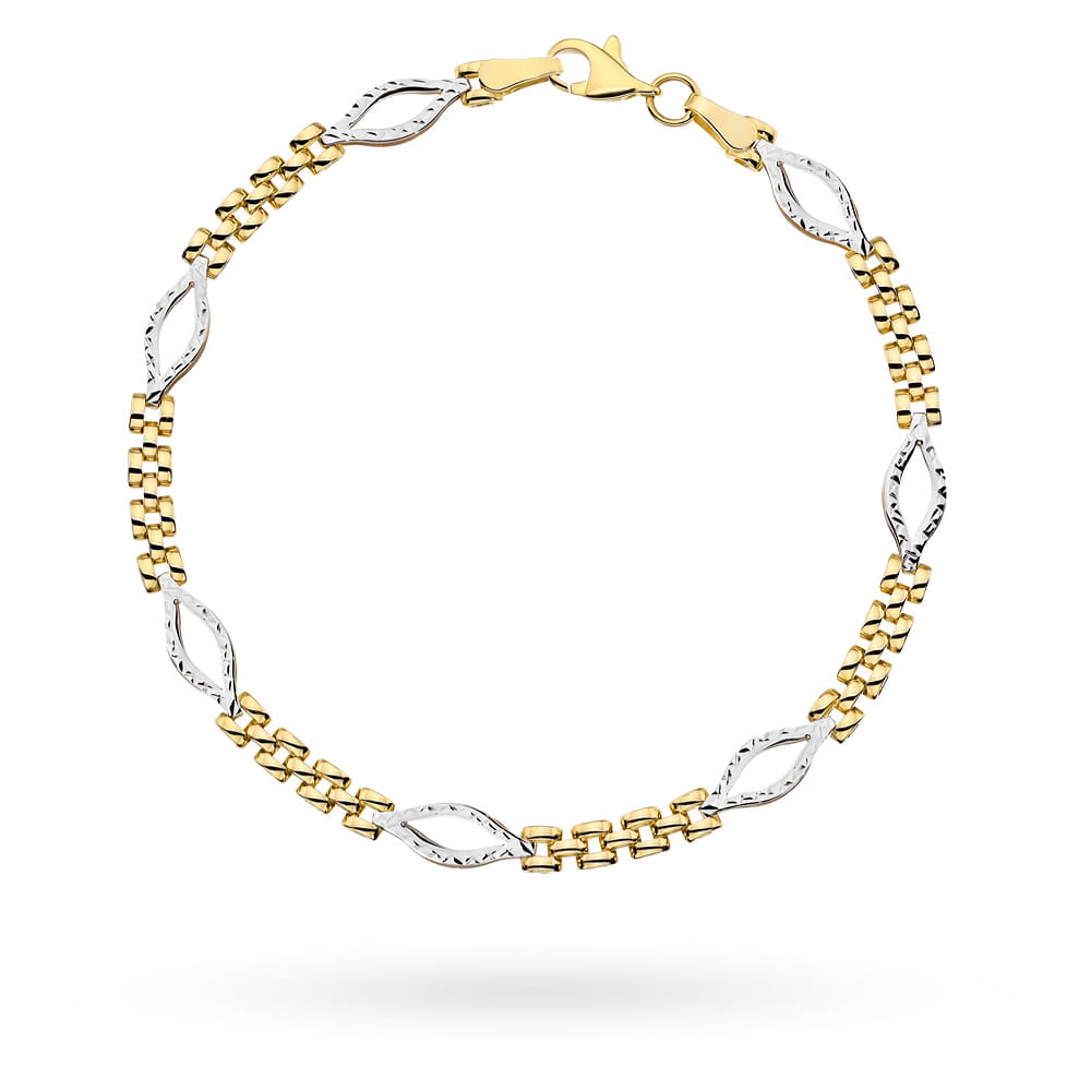 Precyzyjnie wykonana złota celebrytka bransoletka próby 585 w dwóch kolorach złota. Doskonała na prezent dla bliskiej osoby na urodziny, imieniny czy inna okazję.