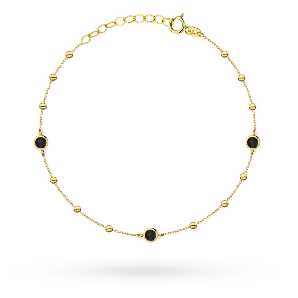 Bransoletka złota z gładkimi kuleczkami i czarnymi kamieniami