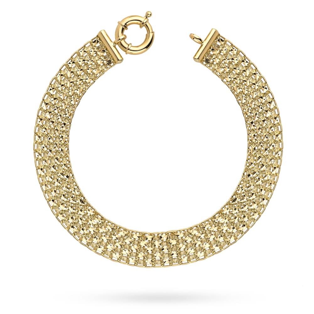 Elegancka i stylowa złota bransoletka próby 585 z kolekcji „PIATTO”.Bransoletki płaskie, zdobione diamentowaniem doskonale sprawdzą się jako ozdoba eleganckiej kreacji. Doskonała jako prezent z okazji, imienin, urodzin, bierzmowania czy też innej ważnej uroczystości. Ozdoba eleganckiej kreacji.