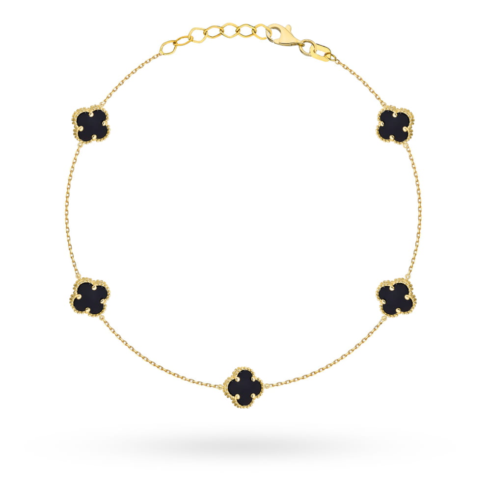Bransoletka złota z pięcioma czarnymi koniczynkami