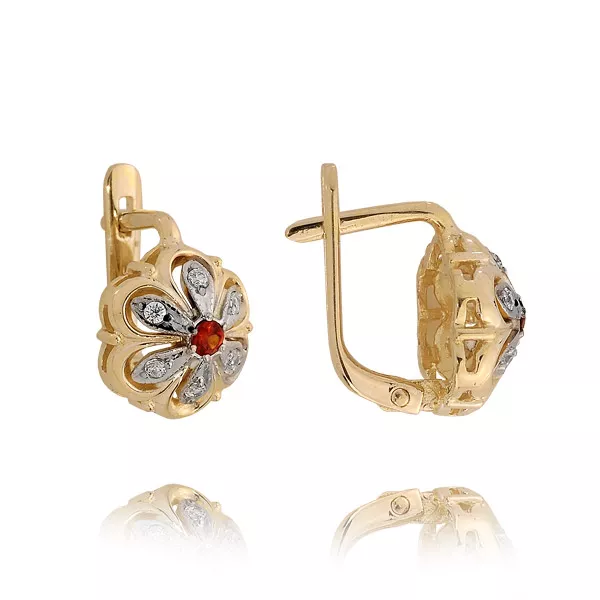 Kolczyki wykonane ze złota próby 0,333 lub 0,585 w kolorze żółtym, białym lub różowym. Ozdobione kamieniami naturalnymi lub laboratoryjnymi, takimi jak diamenty, cyrkonie lub kamienie barwne. Staranna oprawa zapewnia trwałość oraz piękny połysk przez lata. Doskonały wybór na prezent lub do własnej kolekcji.