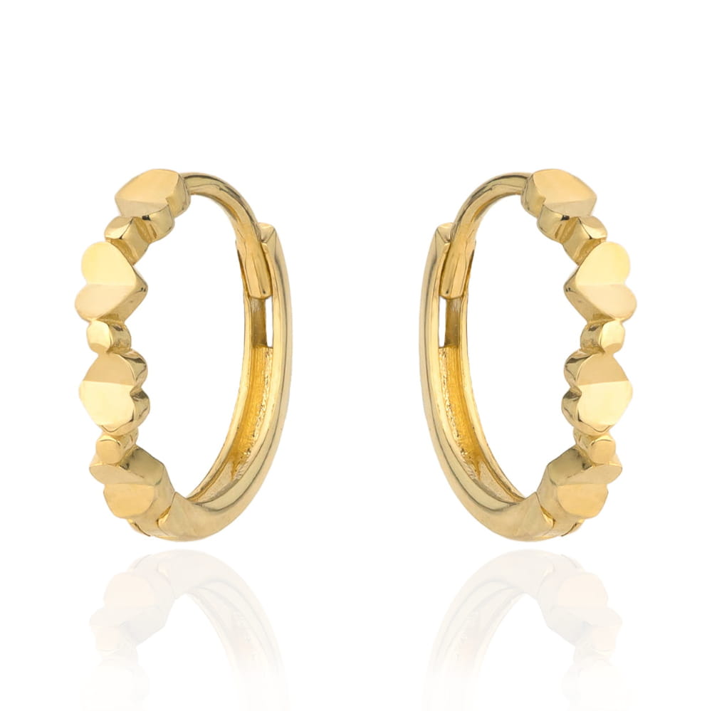 Kolczyki cztery złote serduszka na kreolu