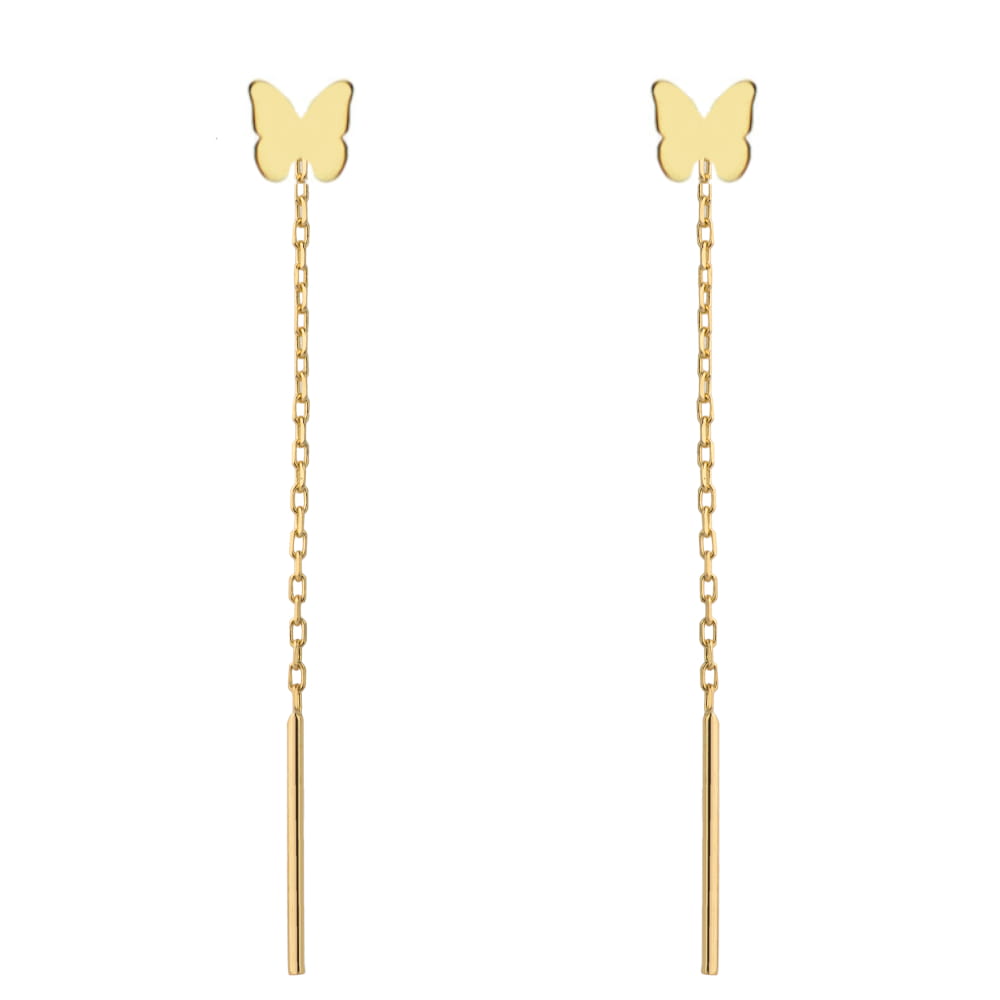 Kolczyki przewlekane złote pełny motylek