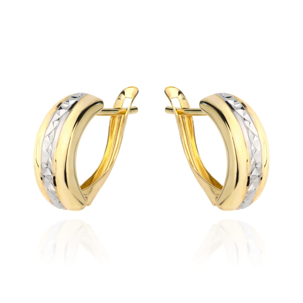Kolczyki w dwóch kolorach złota z centralnym diamentowaniem