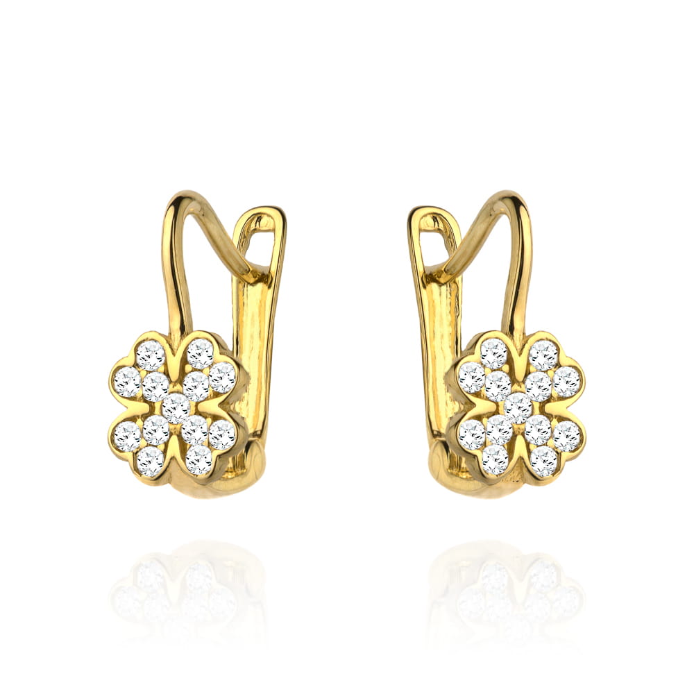 Kolczyki złota koniczynka wypełniona cyrkoniami