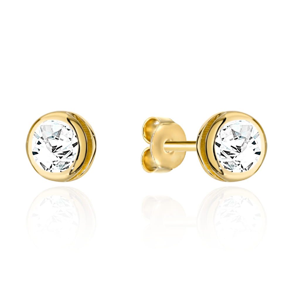 Kolczyki złote cyrkonia otoczona złotem na sztyfcie