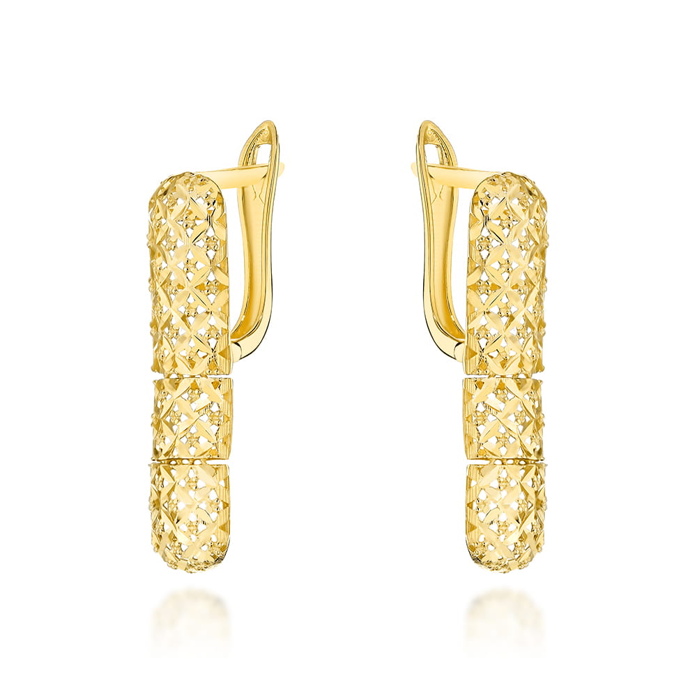 Precyzyjnie wykonane złote kolczyki próby 585. Doskonałe na prezent, imieniny, urodziny, pierwszą Komunię, Bierzmowanie czy też inny ważny jubileusz. Ozdoba codziennej stylizacji.