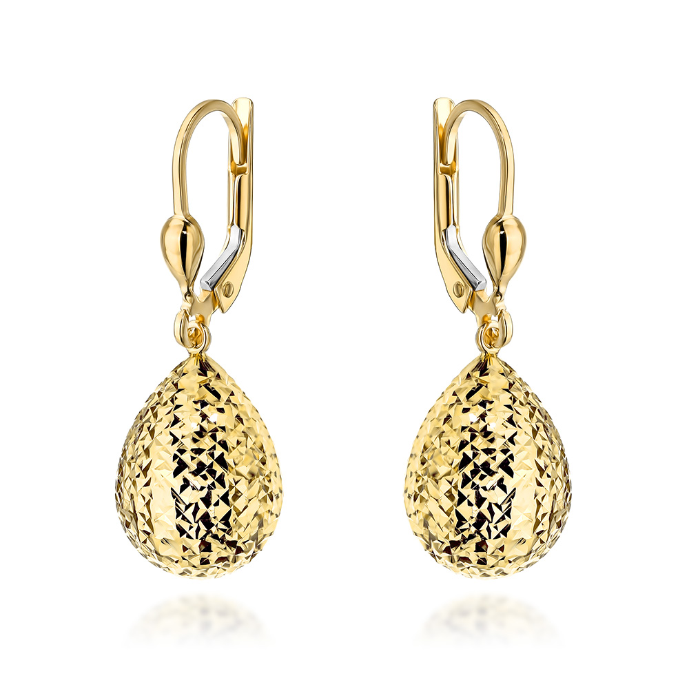 Precyzyjnie wykonane złote kolczyki próby 585. Doskonałe jako prezent na imieniny, ważny jubileusz ozdoba eleganckiej kreacji .