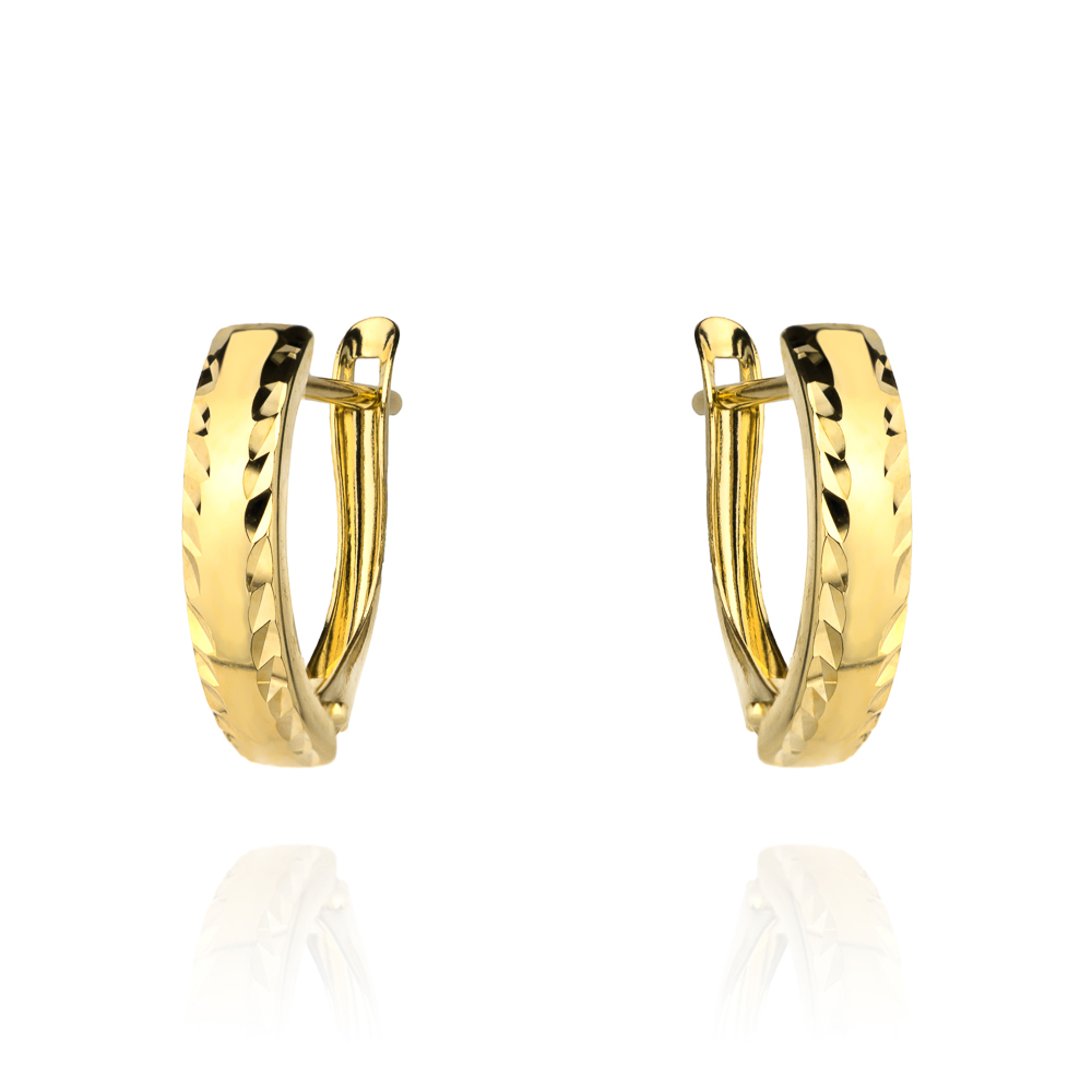 Kolczyki złote diamentowane na obu brzegach szer. 4 mm