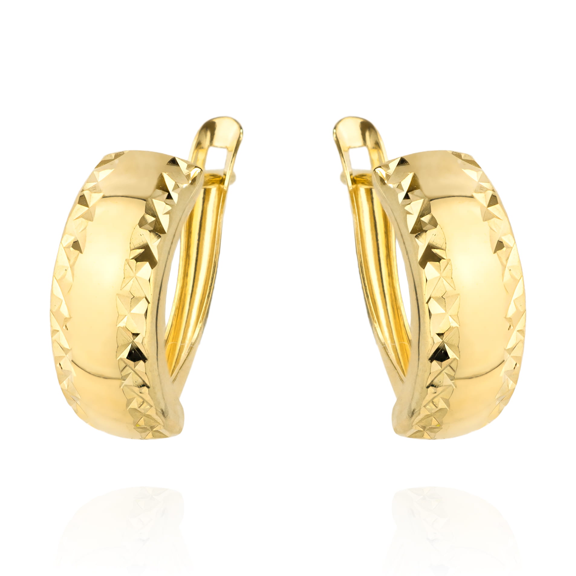 Kolczyki złote diamentowane na obu brzegach szer. 5 mm