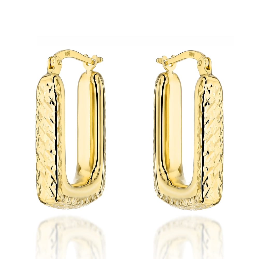 Kolczyki złote diamentowane prostokątne duże