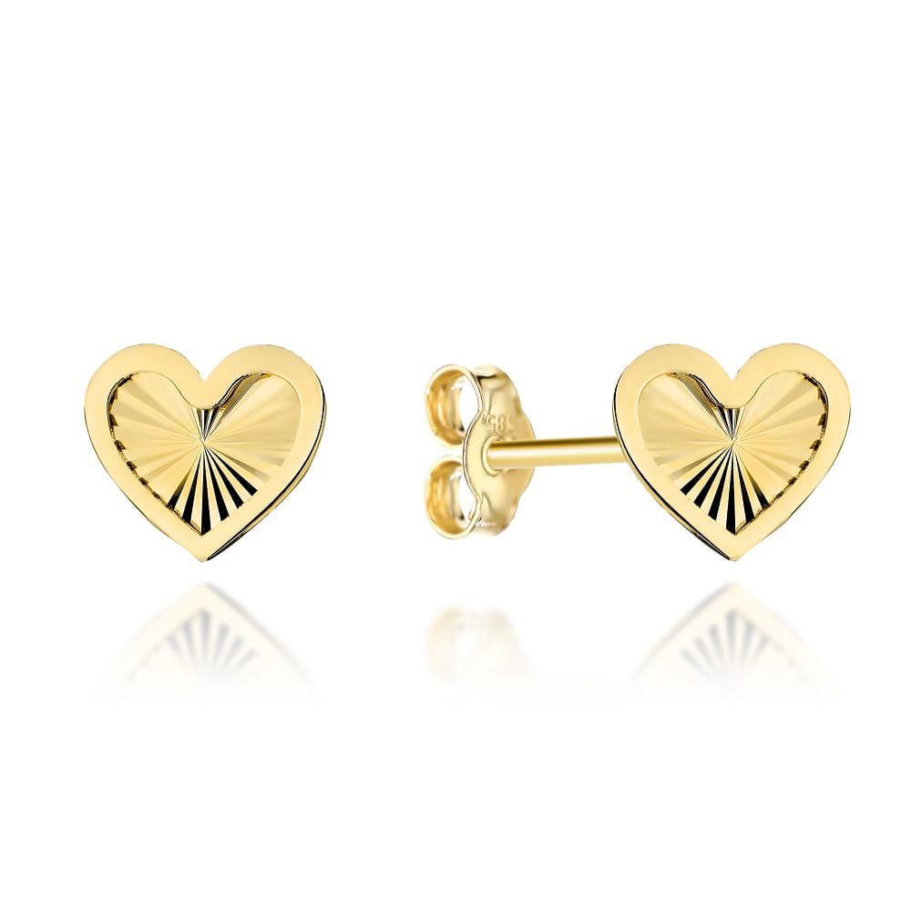 Kolczyki złote diamentowane serduszka w gładkiej oprawie