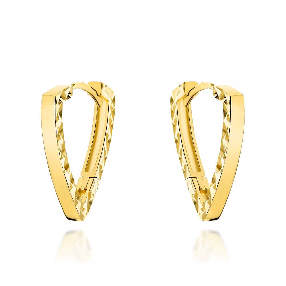 Precyzyjnie wykonane złote kolczyki próby 585. Doskonałe na prezent, imieniny, pierwszą komunię, bierzmowanie, ważny jubileusz.