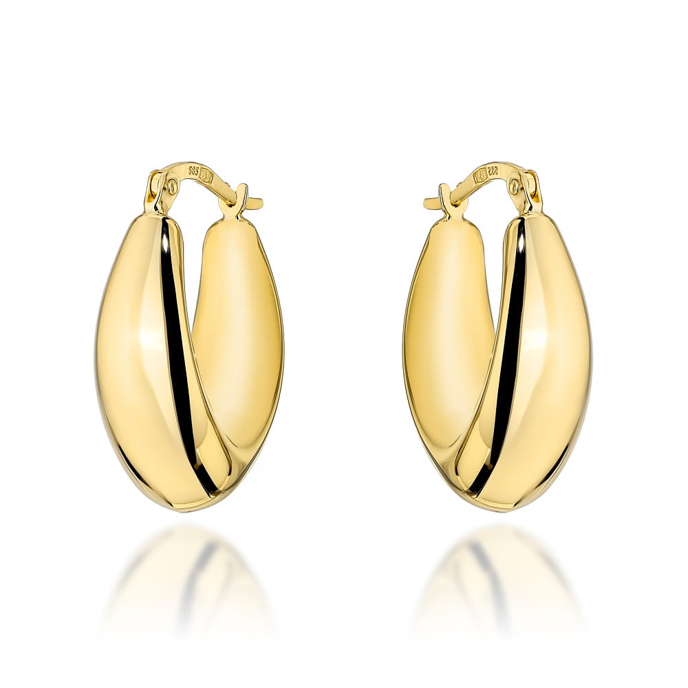 Precyzyjnie wykonane złote kolczyki próby 585. Doskonałe jako prezent na imieniny, ważny jubileusz, ozdoba eleganckiej kreacji.