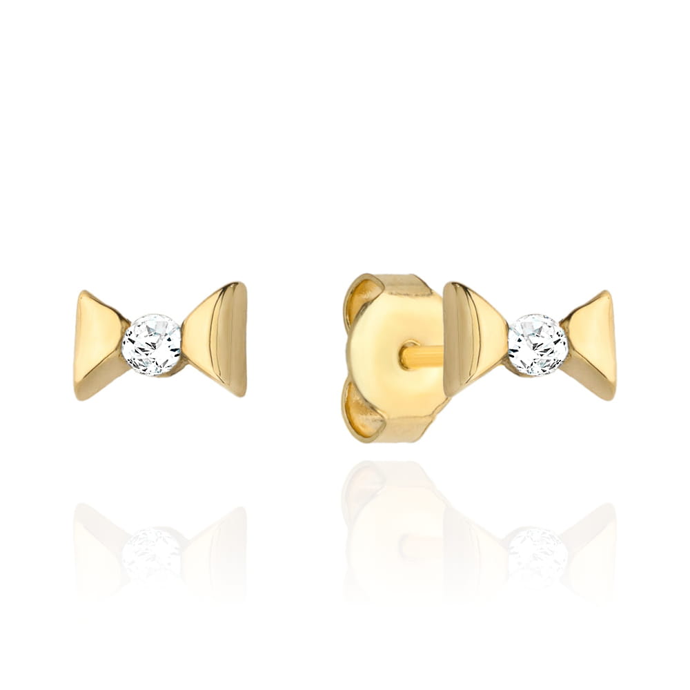 Kolczyki złote kokardki z cyrkonią