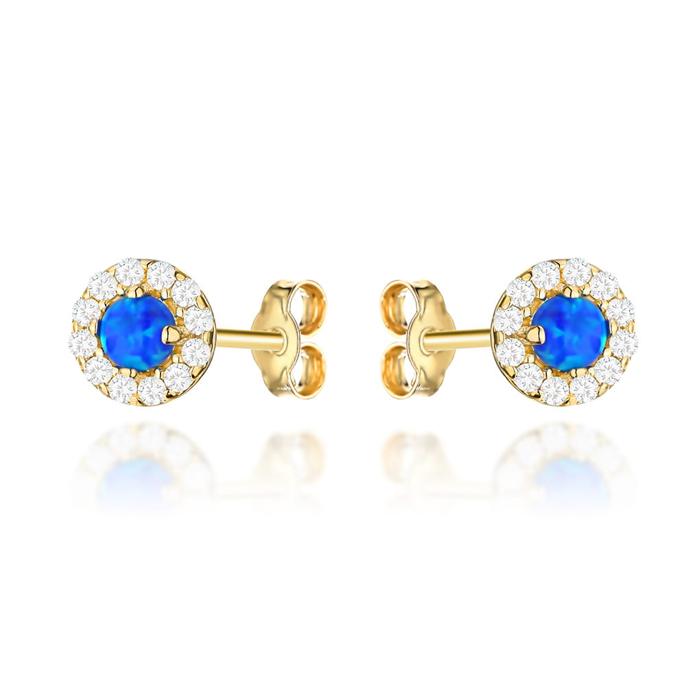Kolczyki złote kółeczka z cyrkoniami i kamień opalit