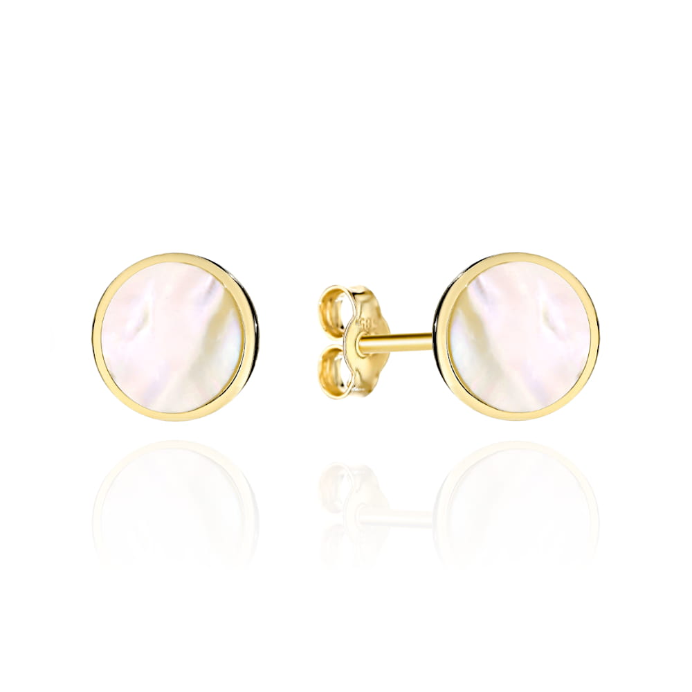 Kolczyki złote kółeczka z masą perłową na sztyfcie