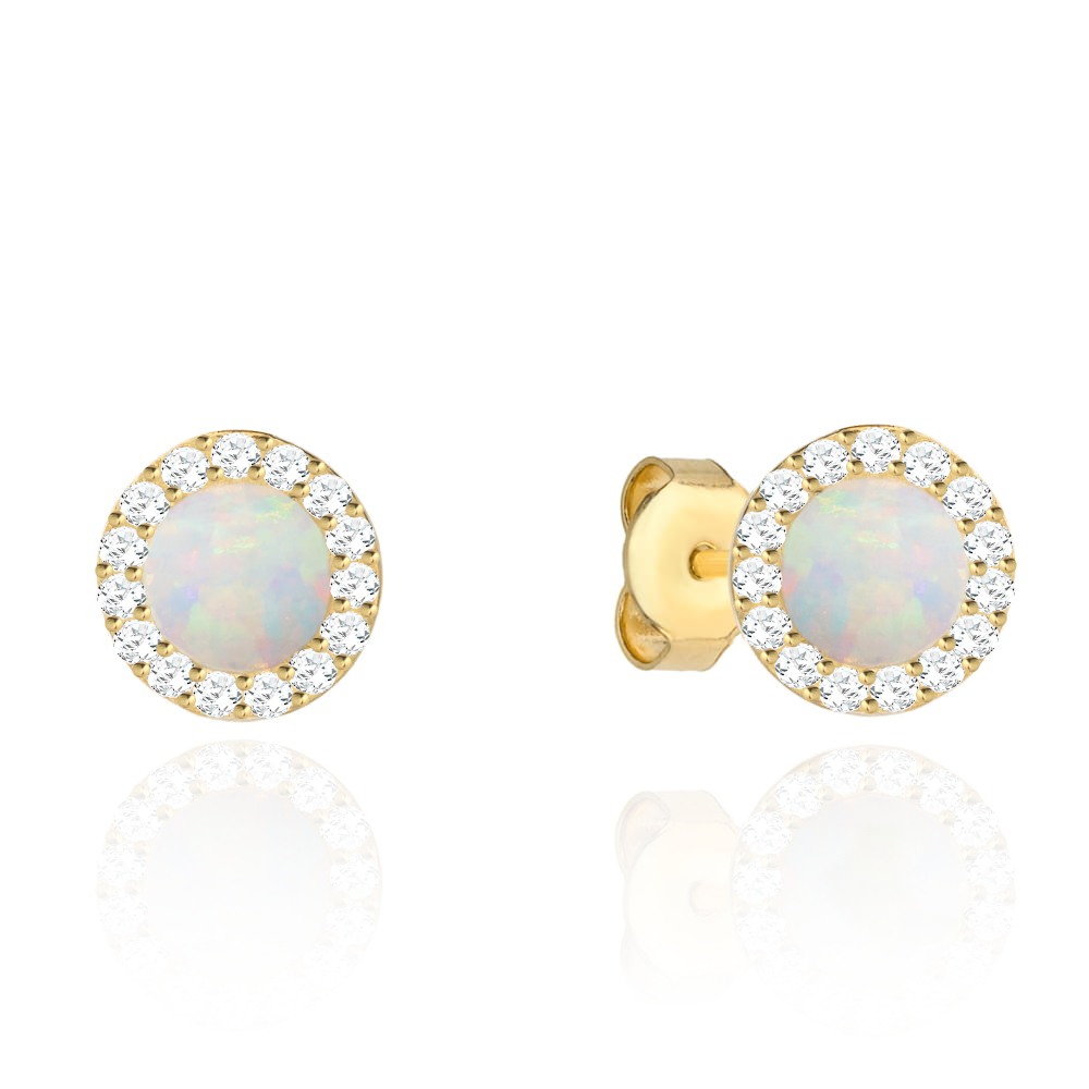 Kolczyki złote kółeczka z opalem i cyrkoniami