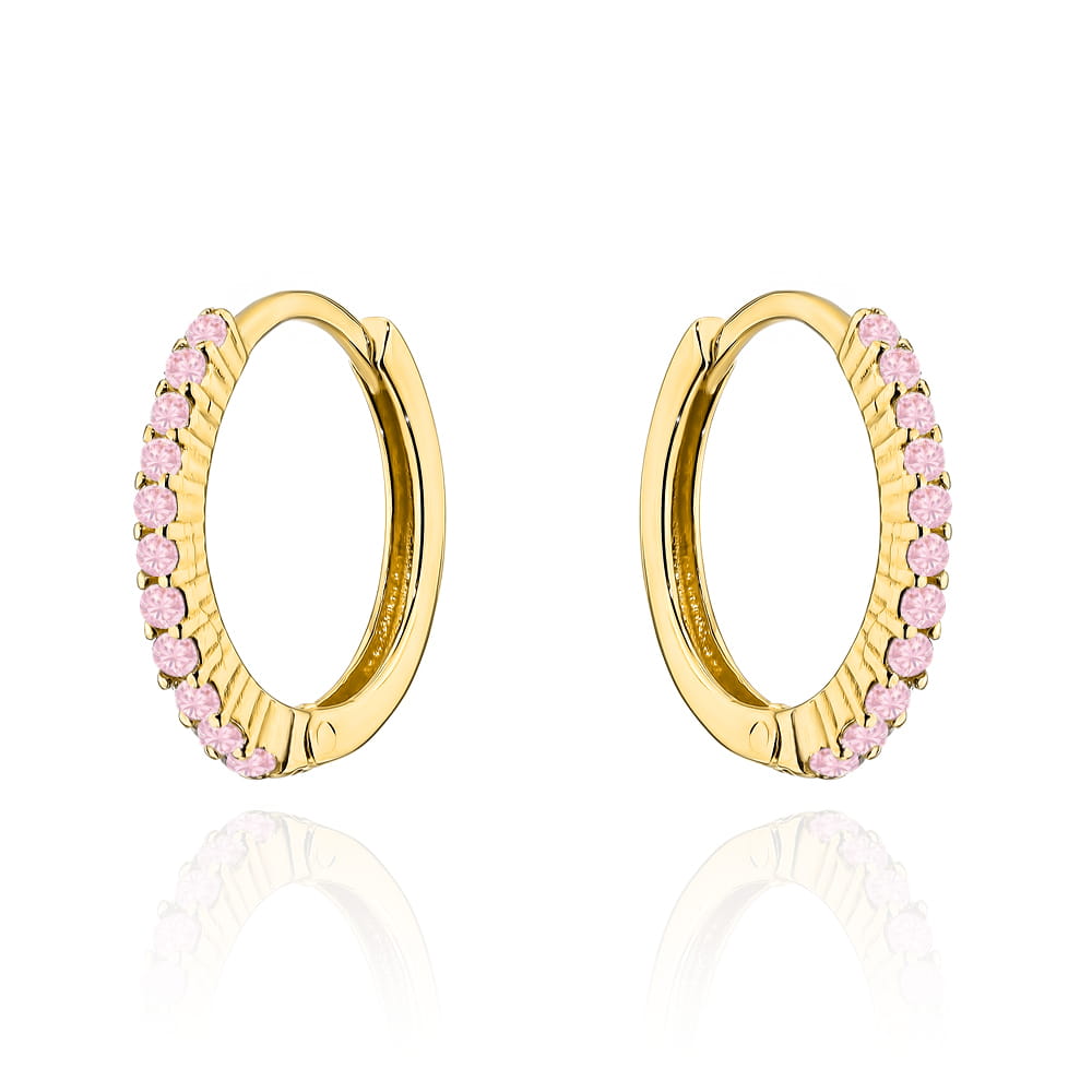 Kolczyki złote kółeczka z różowymi kamieniami