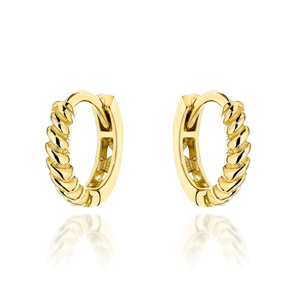 Precyzyjnie wykonane złote kolczyki próby 585. Doskonałe jako prezent na imieniny, urodziny, ważny jubileusz czy też ozdoba codziennej kreacji.