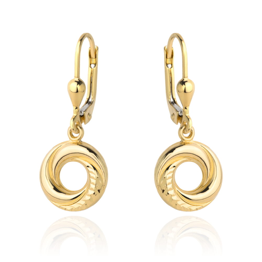 Precyzyjnie wykonane złote kolczyki próby 585. Doskonałe jako prezent na imieniny, urodziny, ważny jubileusz czy też ozdoba codziennej eleganckiej kreacji.