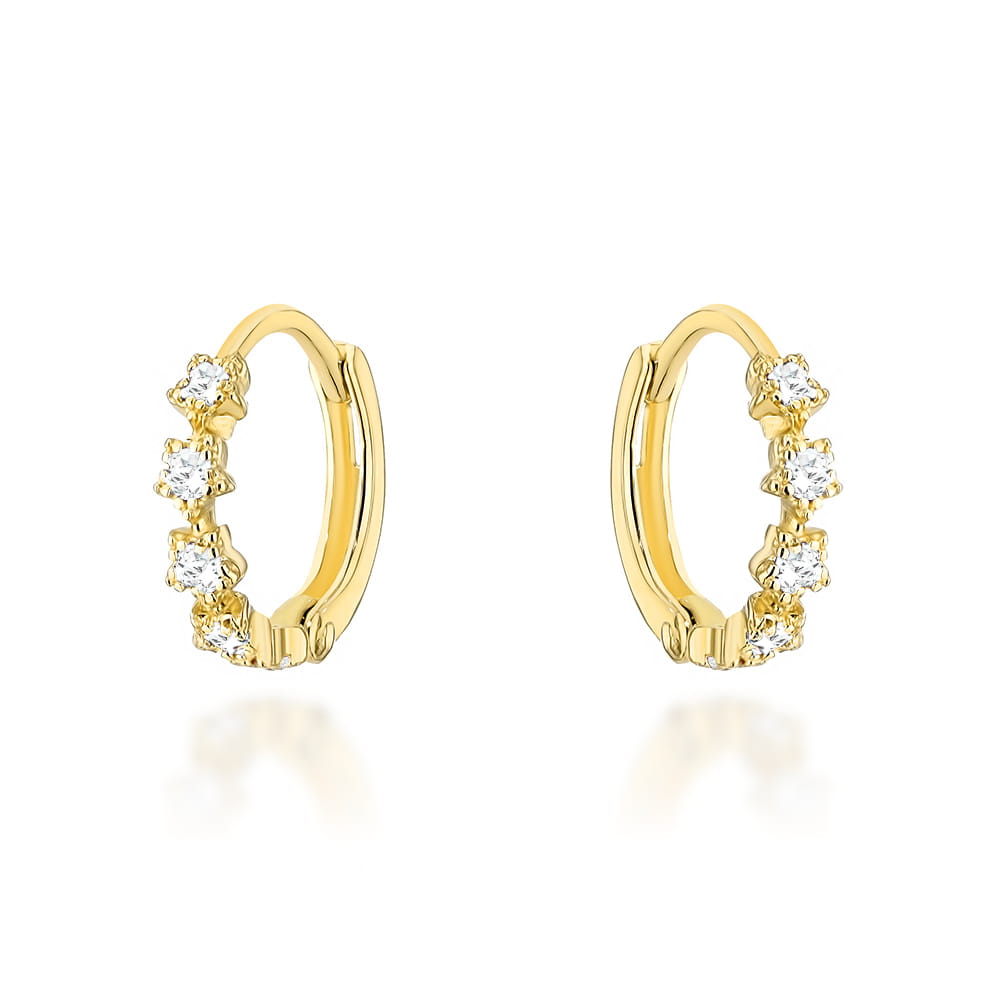 Kolczyki złote kwiatki z białymi cyrkoniami na kreolu