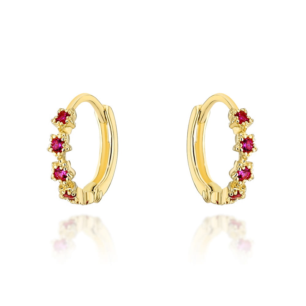 Kolczyki złote kwiatki z cyrkoniami w kolorze fuksji na kreolu