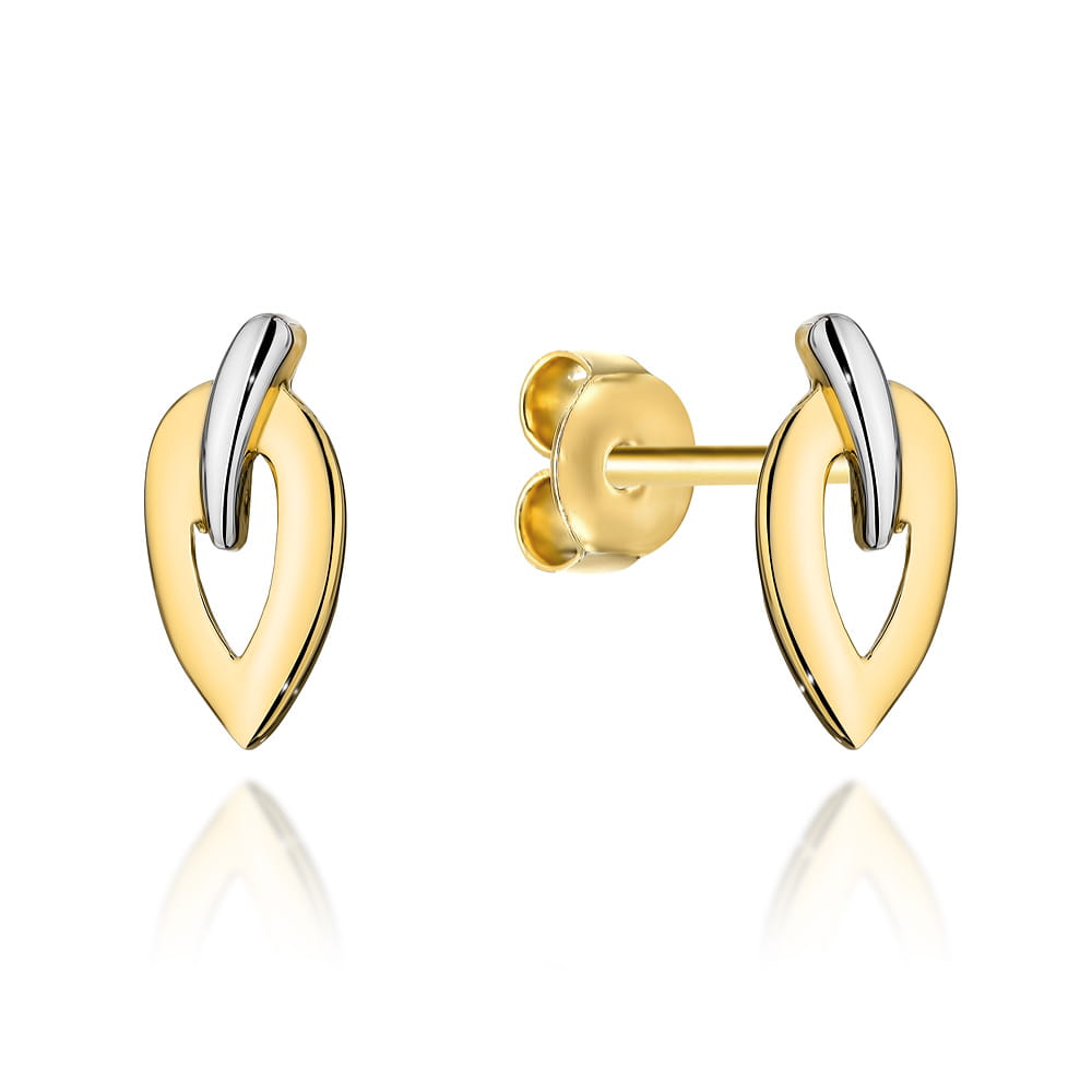 Kolczyki złote listki w dwóch kolorach złota