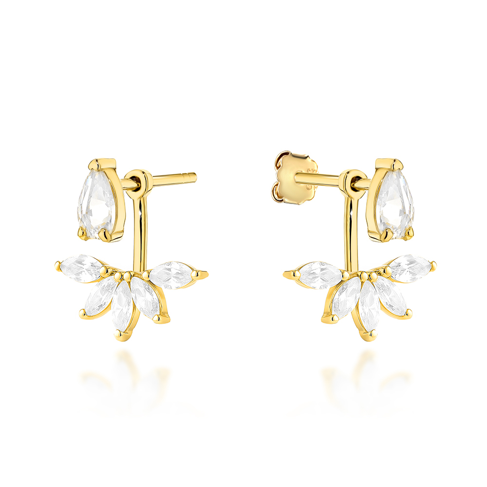 Kolczyki złote listki z cyrkoniami z biżuteryjnym zapięciem