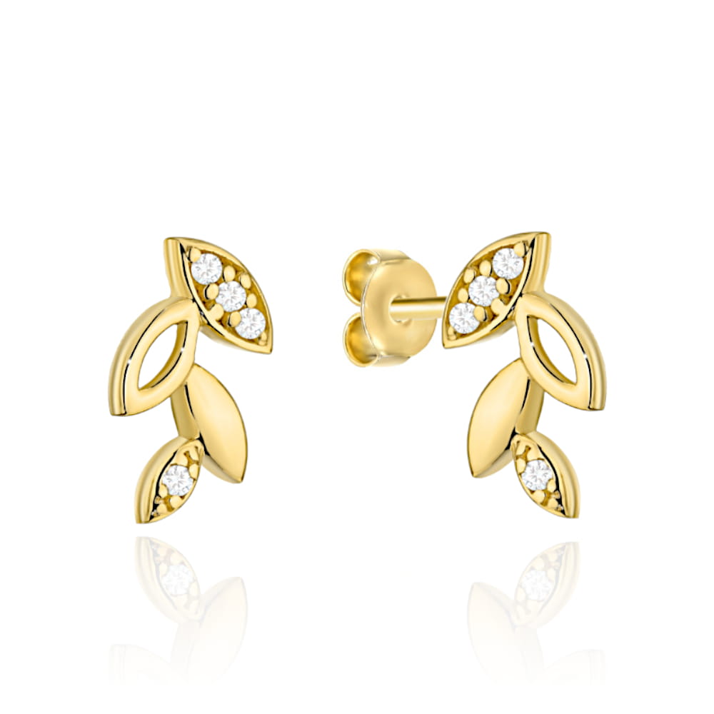 Kolczyki złote listki z cyrkoniami
