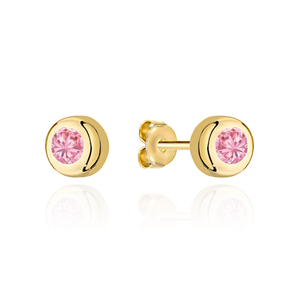 Kolczyki złote mały różowy kamyk otoczony złotem
