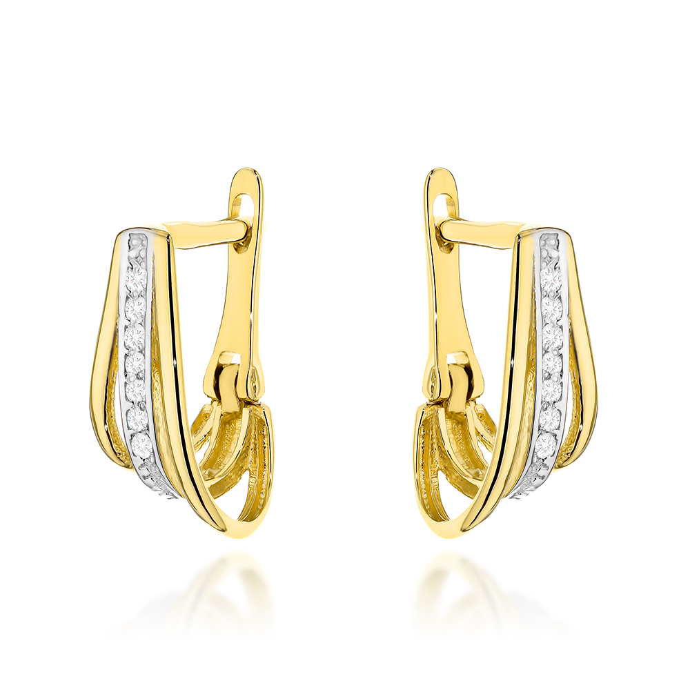 Kolczyki złote potrójne z cyrkoniami w dwóch kolorach złota