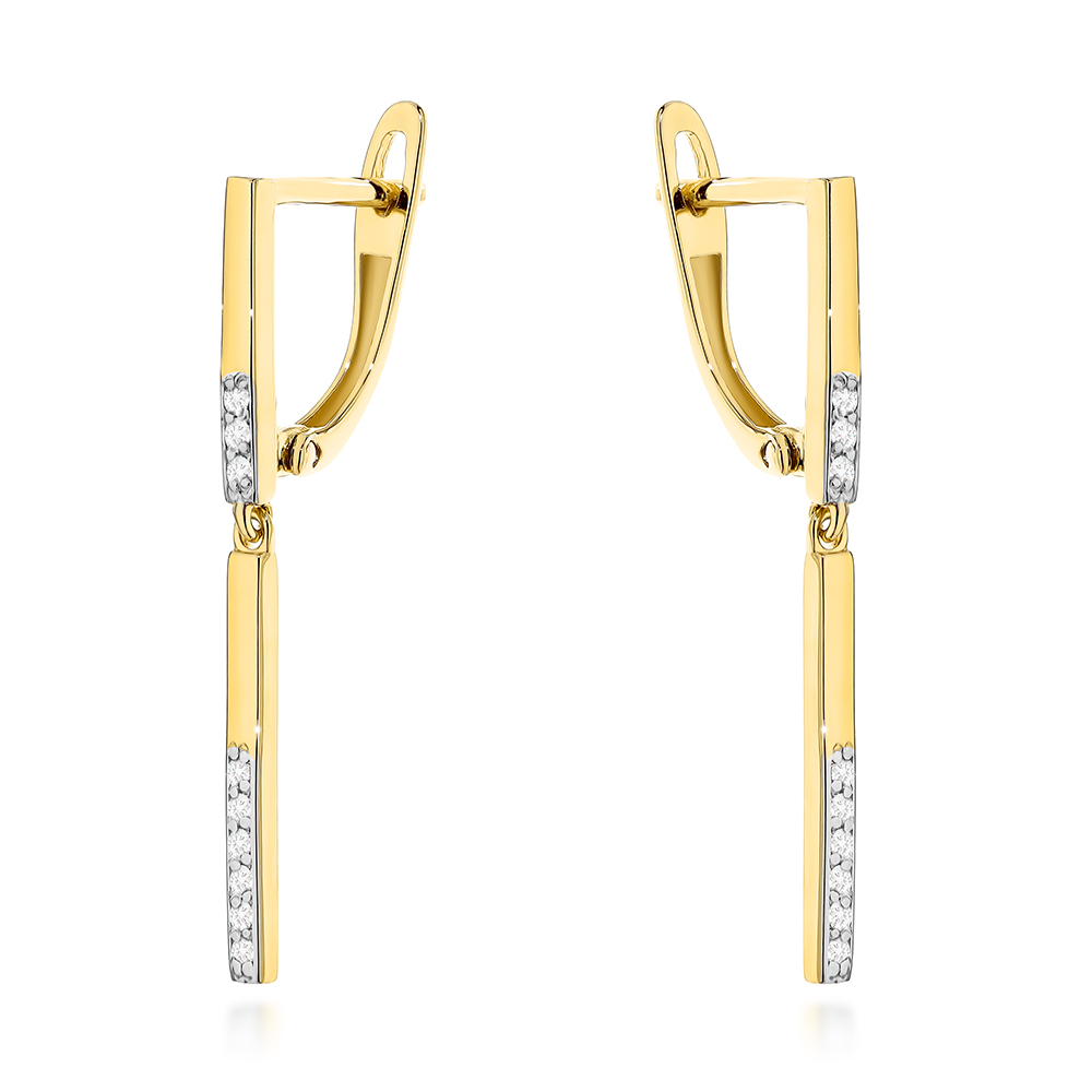 Kolczyki złote pręcik z cyrkoniami na angielskim zapięciu
